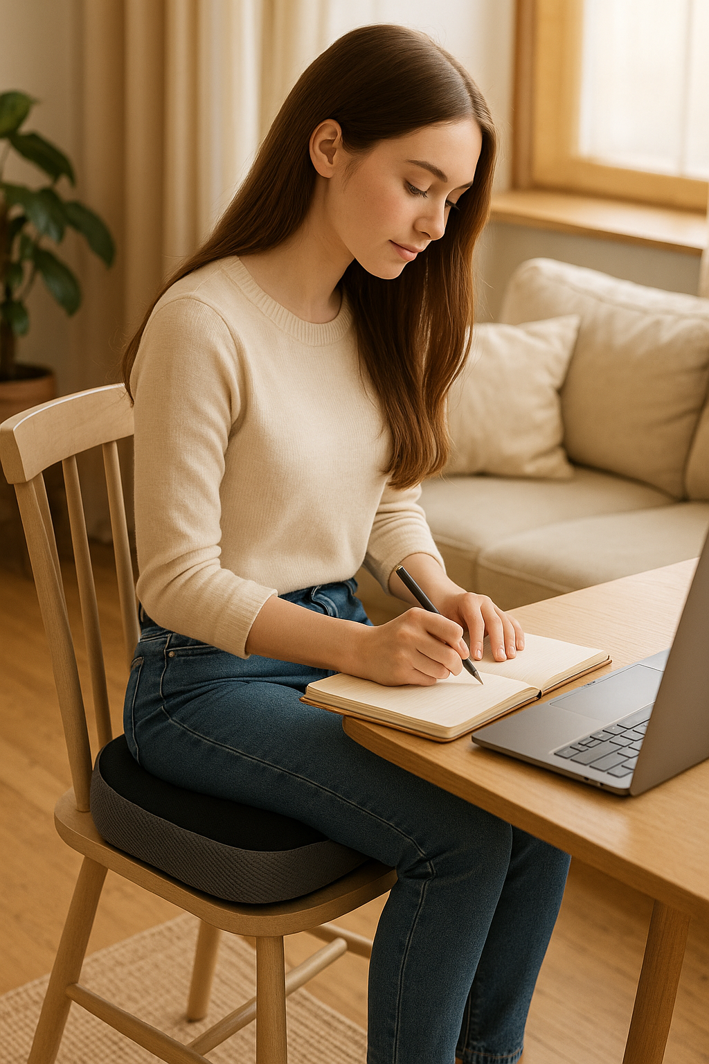 Thanks to its carefully engineered shape, your cushion distributes pressure evenly and supports the lower back. The result: less pain, more comfort, and the ability to work comfortably for hours.